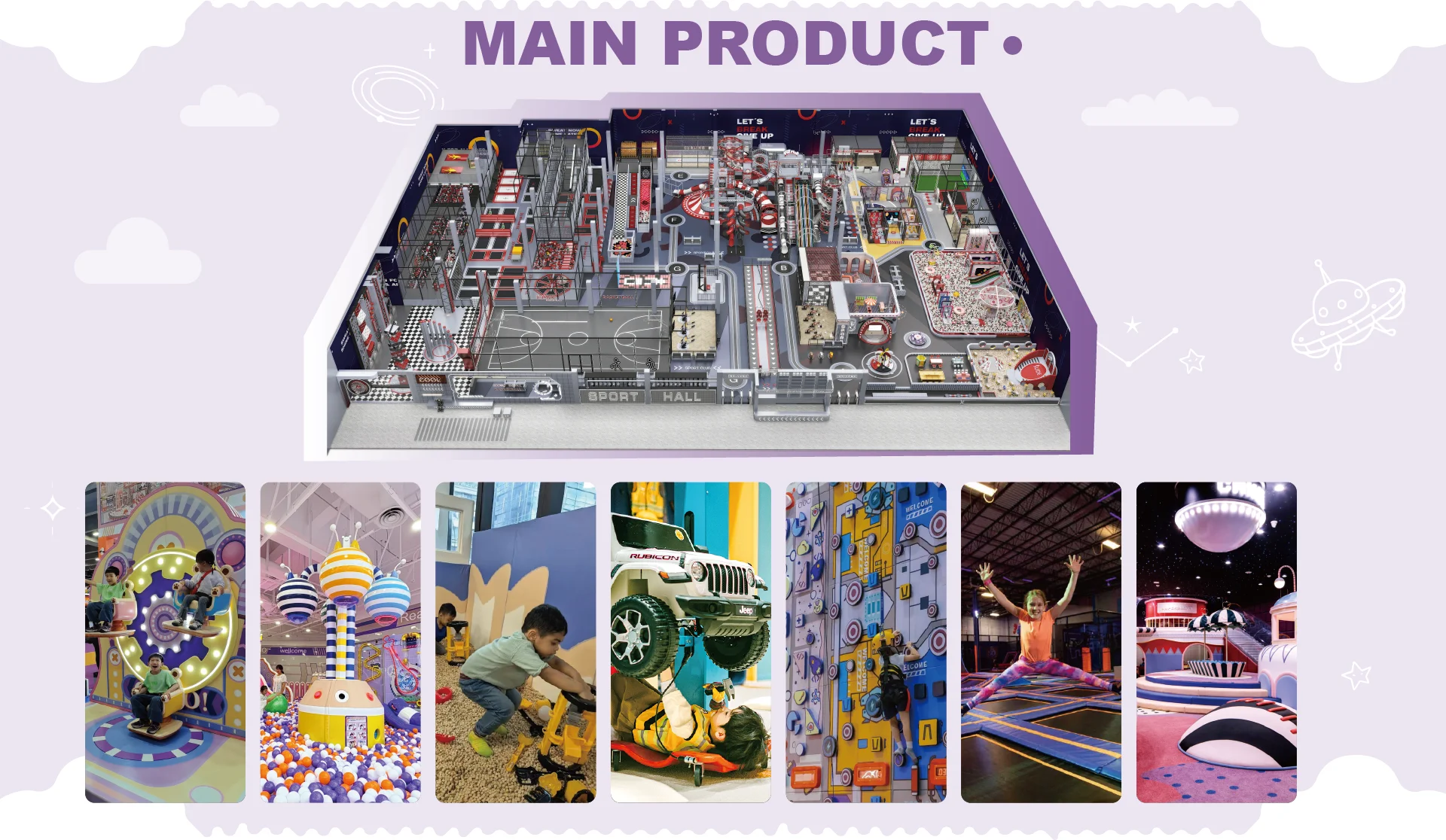 Belangrijkste producten:Indoor speeltuin, trampolinepark, klimmuur, elektrische soft play modules, ninja cursussen